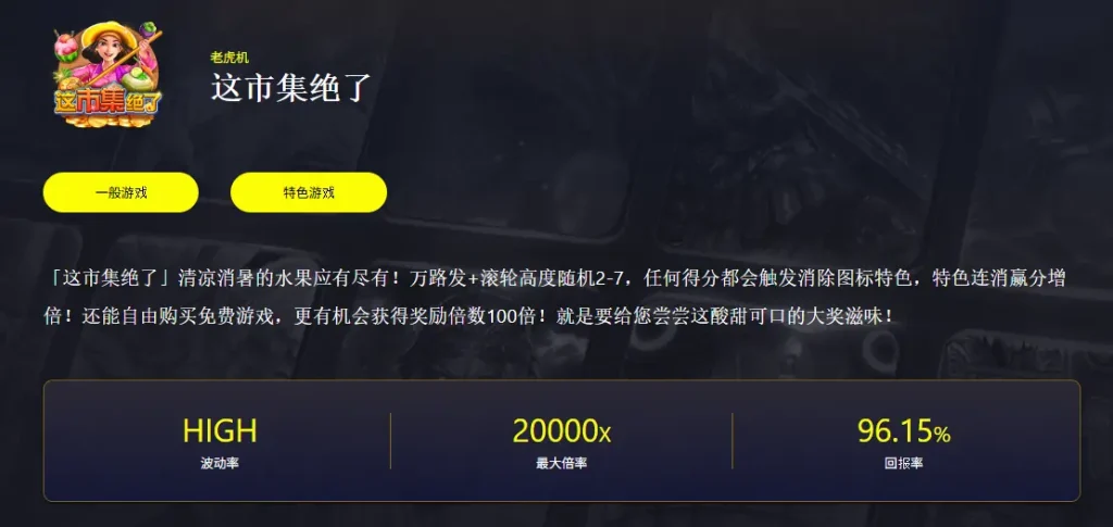 如果你最近在找「RTP高、節奏快、爆發強」的老虎機遊戲,那你多半會看到同一個名字一直被提起——CQ9的這市集絕了。它走的是清爽又熱鬧的市集主題:水果、攤位、亮眼色塊與偏快的動畫節奏,一進場就很有「要開趴了」的感覺。更重要的是,它不是只靠外觀吸睛,而是靠一套很明確的機制在堆疊刺激感:滾輪高度會變、獲勝方式超多、而且還有MAX滾輪爆發段。
